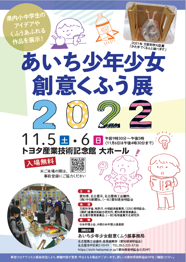 「あいち少年少女創意くふう展2023」を、11月3日(金・祝)・4日(土)の2日間、
